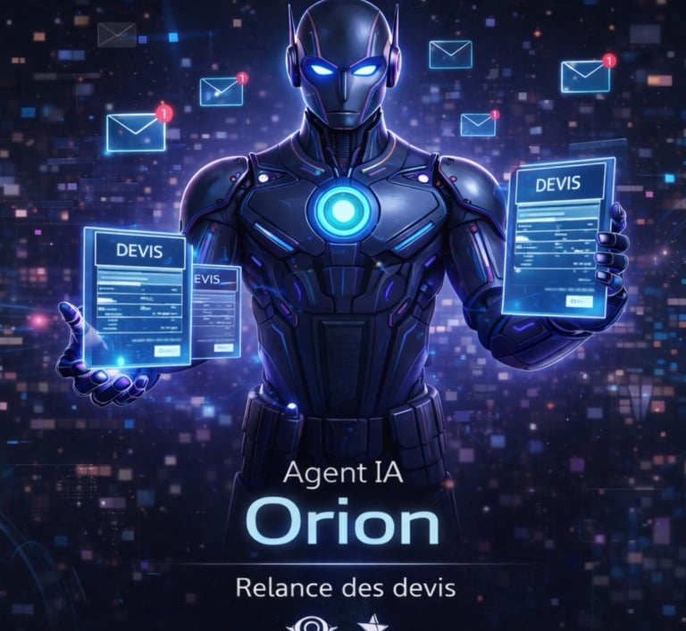 Spécialisé dans la relance intelligente des devis, Orion analyse les devis envoyés, détecte ceux qui n’ont pas encore reçu de réponse et relance automatiquement les prospects au bon moment.